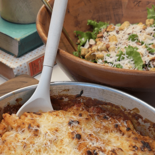 In a large bowl, add the butter lettuce along with radishes, carrots, croutons, bacon, and Parmesan.